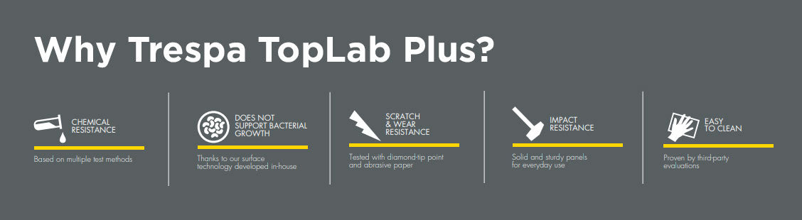 We offer furniture composed of water-resistant materials known for their hygienic benefits and durability. Both our Sealwise and Trespa ranges can safely withstand water exposure without deterioration. Featuring anti-bacterial protection, the use of these products can help ensure cleanliness, prevent mould growth and maintain sanitary conditions. This makes them well-suited for hygienic environments such as laboratories and medical facilities.