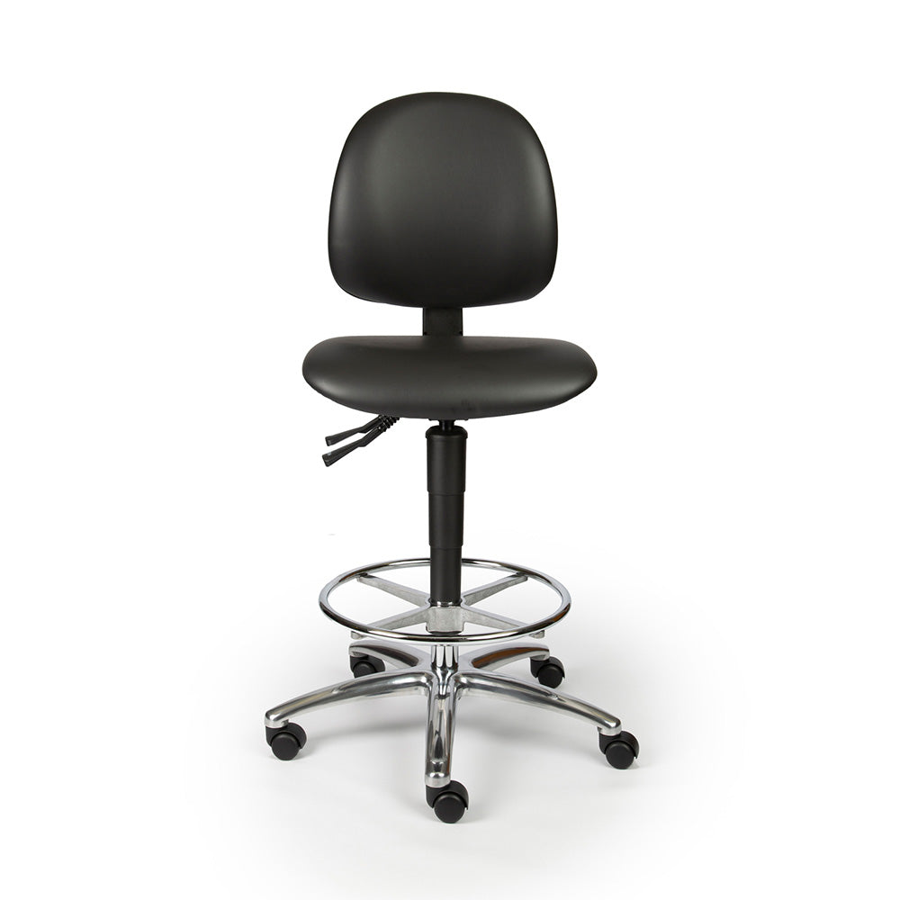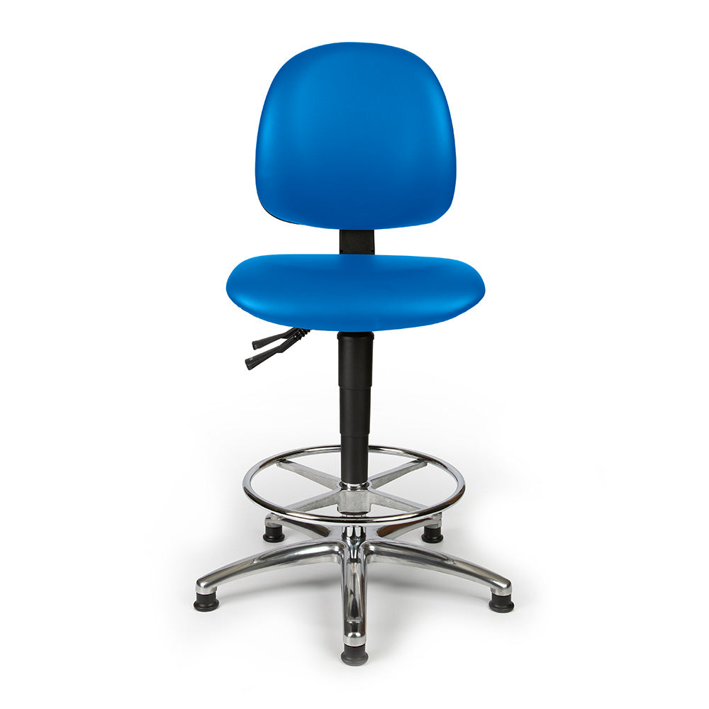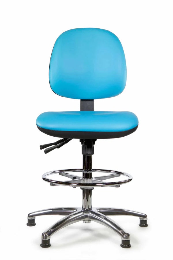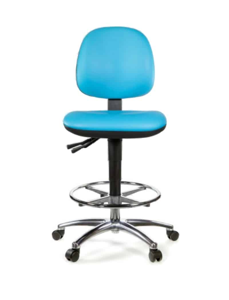 The anti-microbial clean room chair is also available with a foot ring for extra comfort on the high height variant.