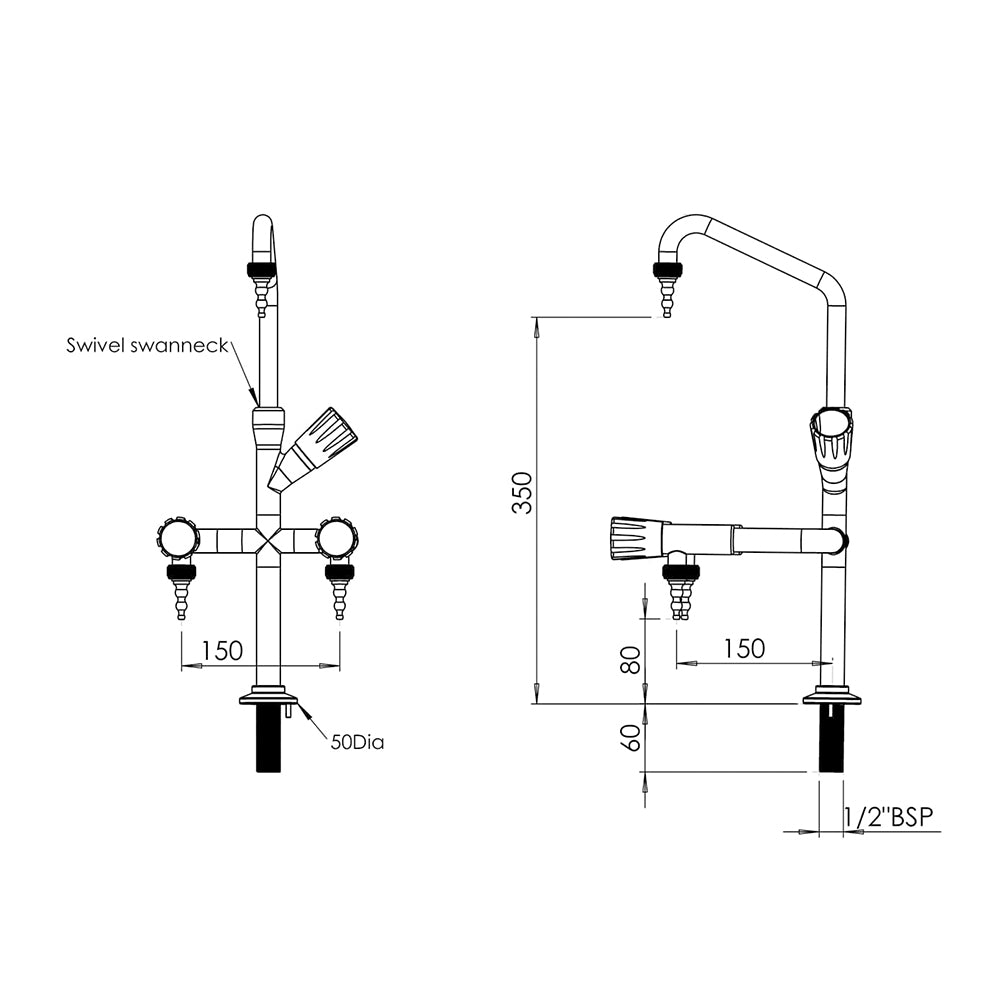 Our Arboles 900126/900127 three-way pillar bib tap with swivel neck and a choice of removable or fixed serrated nozzles is designed for hygienic environments, delivering reliable and consistent hot or cold-water control. Durable and corrosion resistant, it ensures dependable performance in laboratories, research facilities, and other hygiene-critical settings.