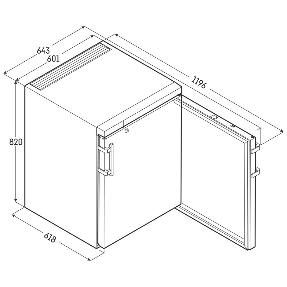 The LKUv 1610 is designed for durability and ease of use; featuring a robust steel housing and a commercial-grade polystyrol liner for easy cleaning. Its three adjustable glass shelves, each capable of supporting up to 40kg, offer flexible storage configurations. A slimline handle with an integrated opening mechanism and reversible door hinges ensure ergonomic access and versatile installation.