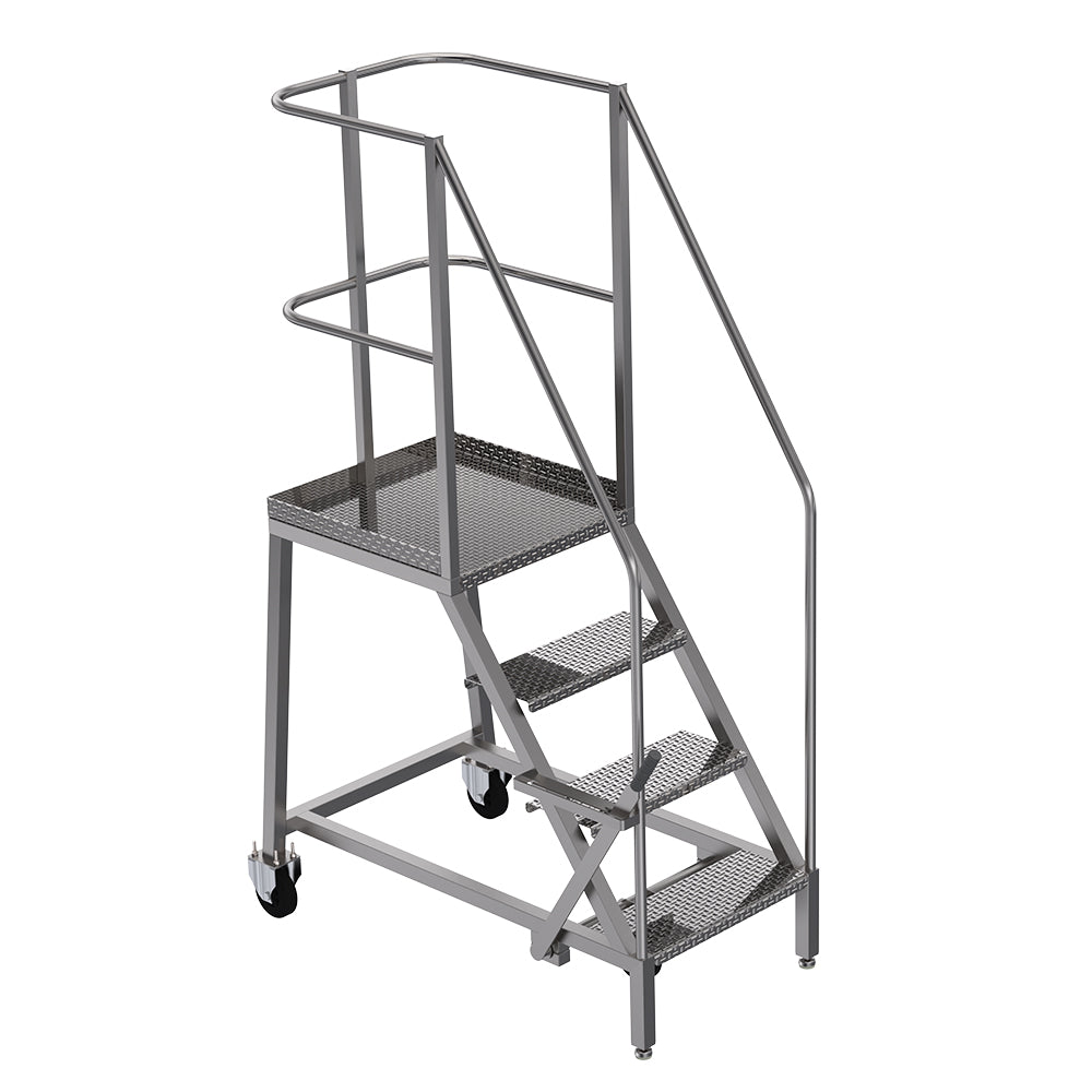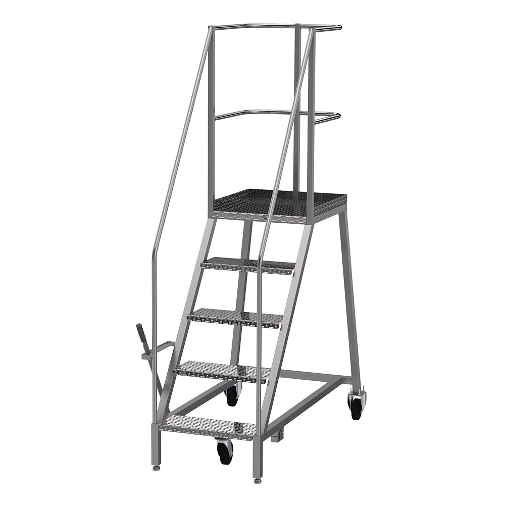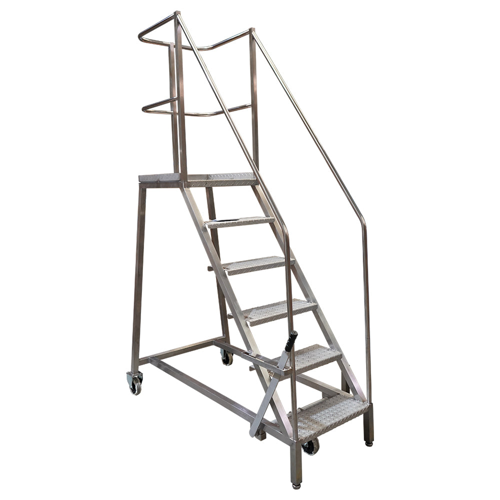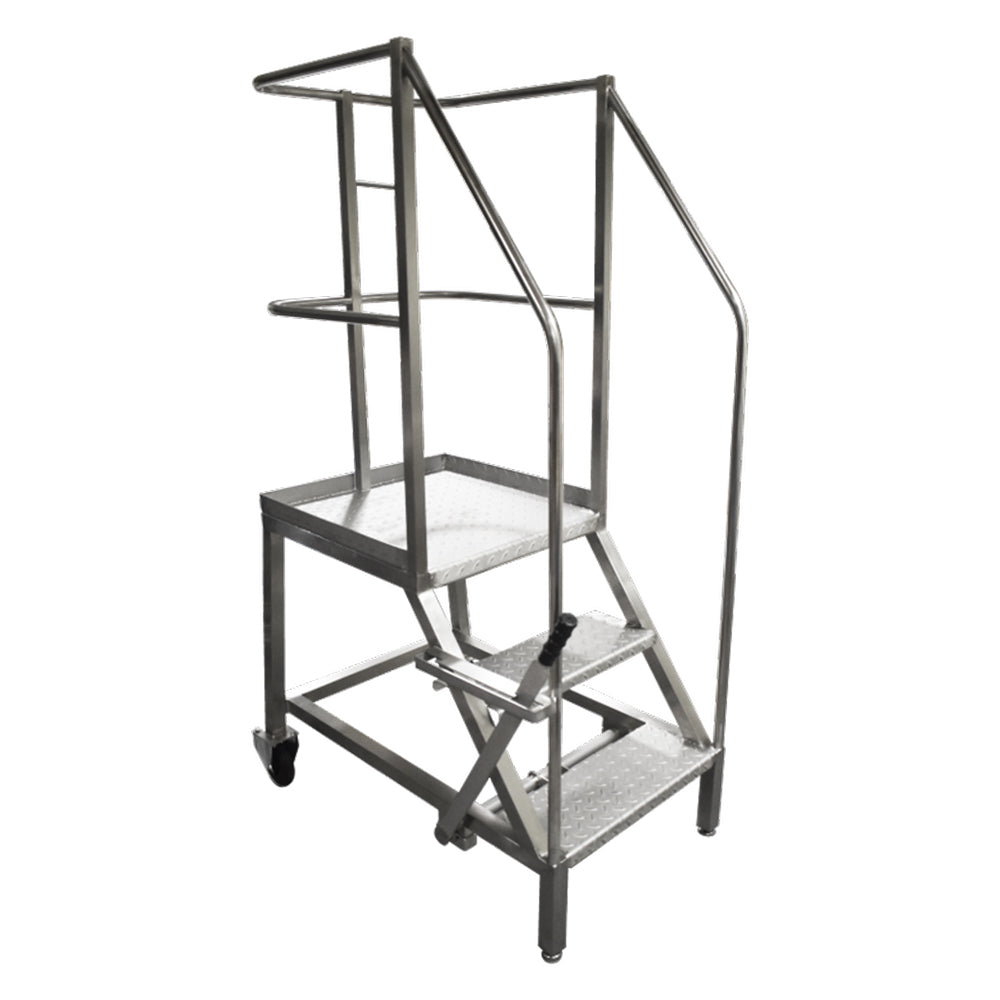 Our mobile safety steps offer optimal durability and toughness. They are manufactured from 304L-grade stainless steel and in accordance with EN 131-7.