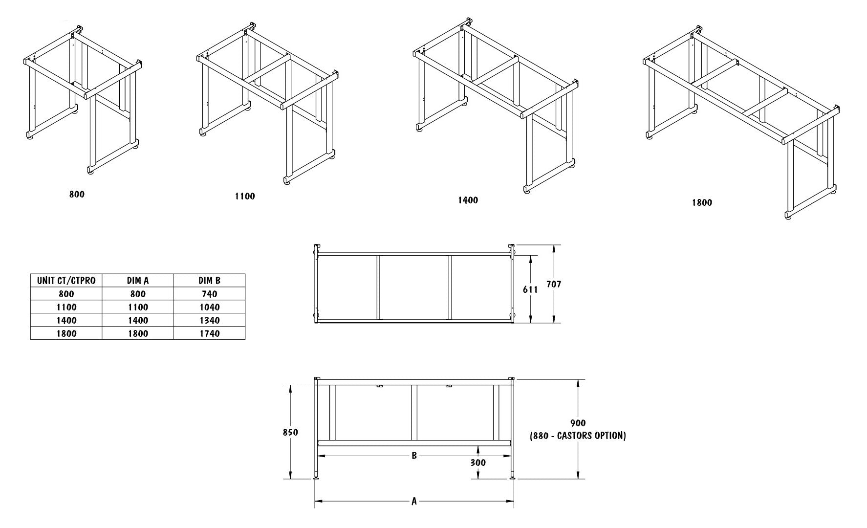 The static base stand includes adjustable feet for stability on uneven floors and is constructed from mild steel box section with a durable, powder-coated finish. This provides excellent chemical resistance and makes cleaning quick and easy. Supplied flat packed, the stand is quickly assembled on-site. Its open-frame design promotes cleanroom airflow and allows clear access underneath for floor cleaning, while the inset front and rear legs allow the stand to sit flush against skirting boards or returned flooring.