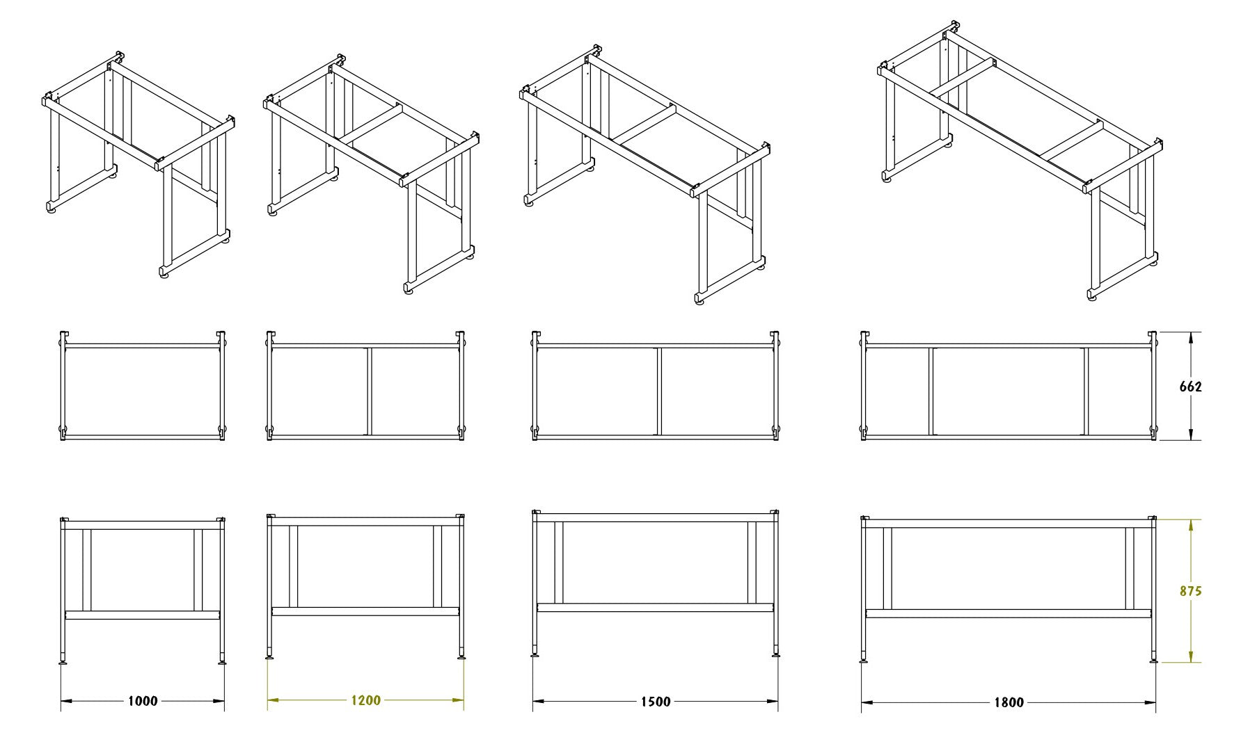 Each stand features adjustable feet for stability on uneven floors and is constructed from mild steel box section with a durable, powder-coated finish for excellent chemical resistance and easy cleaning. Supplied flat packed, the stand is quickly assembled on-site. Its open-frame design supports cleanroom airflow and allows clear access underneath for floor cleaning. Inset front and rear legs allow the stand to sit flush against skirting boards or returned flooring.