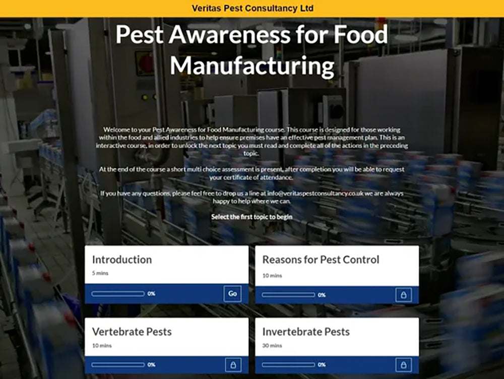Pest awareness for food manufacturing online training course
