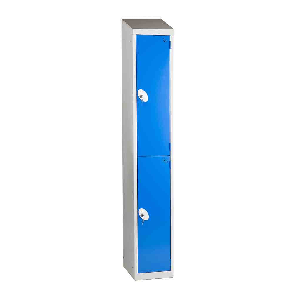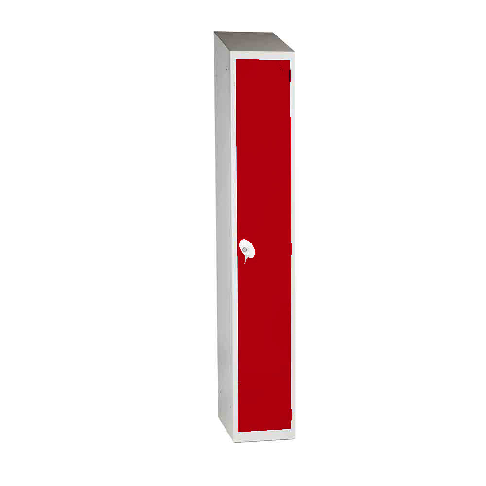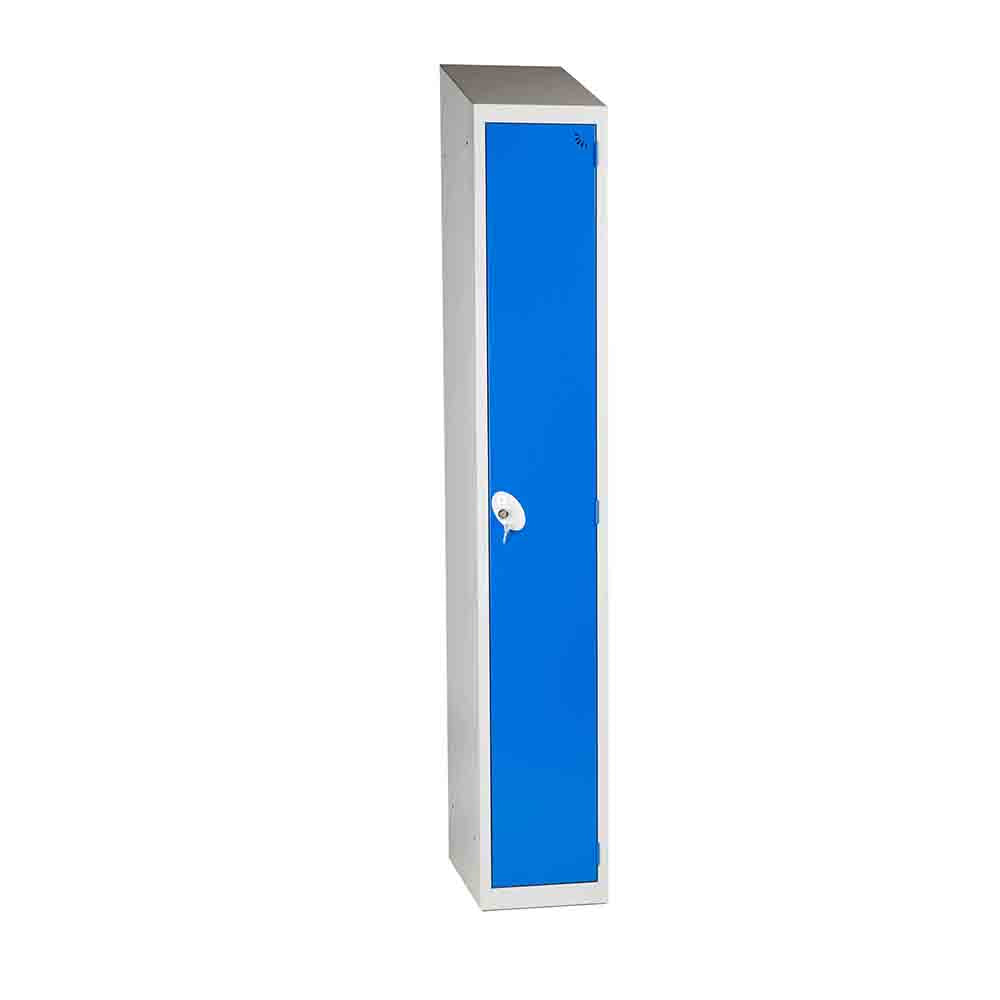 The sloping top is a more hygienic, easy to clean design but there is a flat top option available. You can position banks of lockers against a wall or use back to back as a workspace partition.