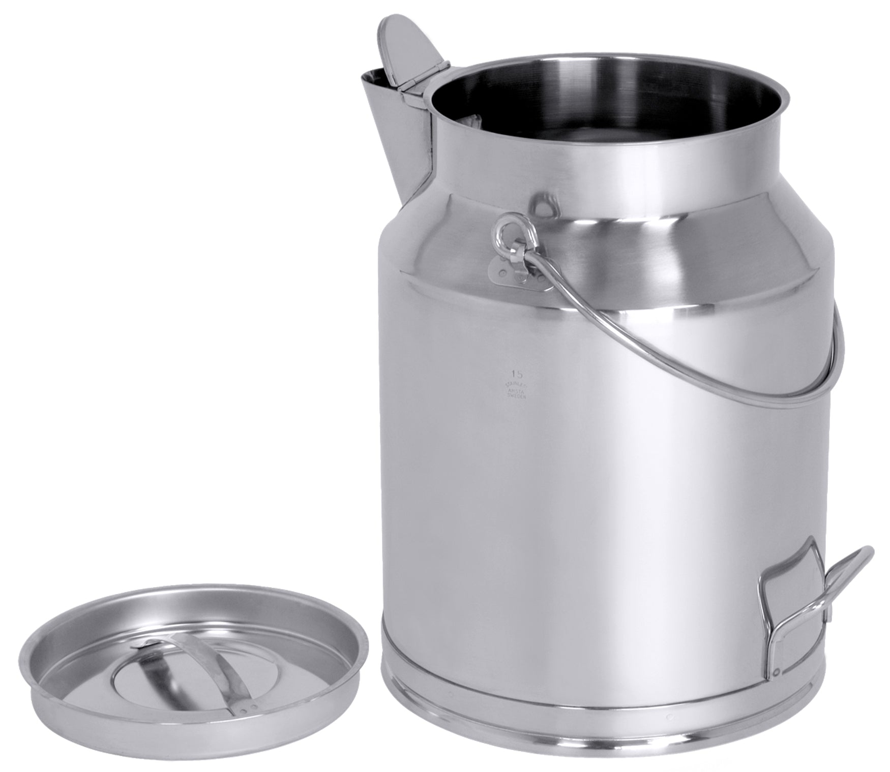 Our fully welded 304-grade stainless steel churn with pouring lip comes in a bright polished finish complete with lid and is 100% crevice free. Robust standing rim included to avoid direct contact with the floor and a second lifting handle.