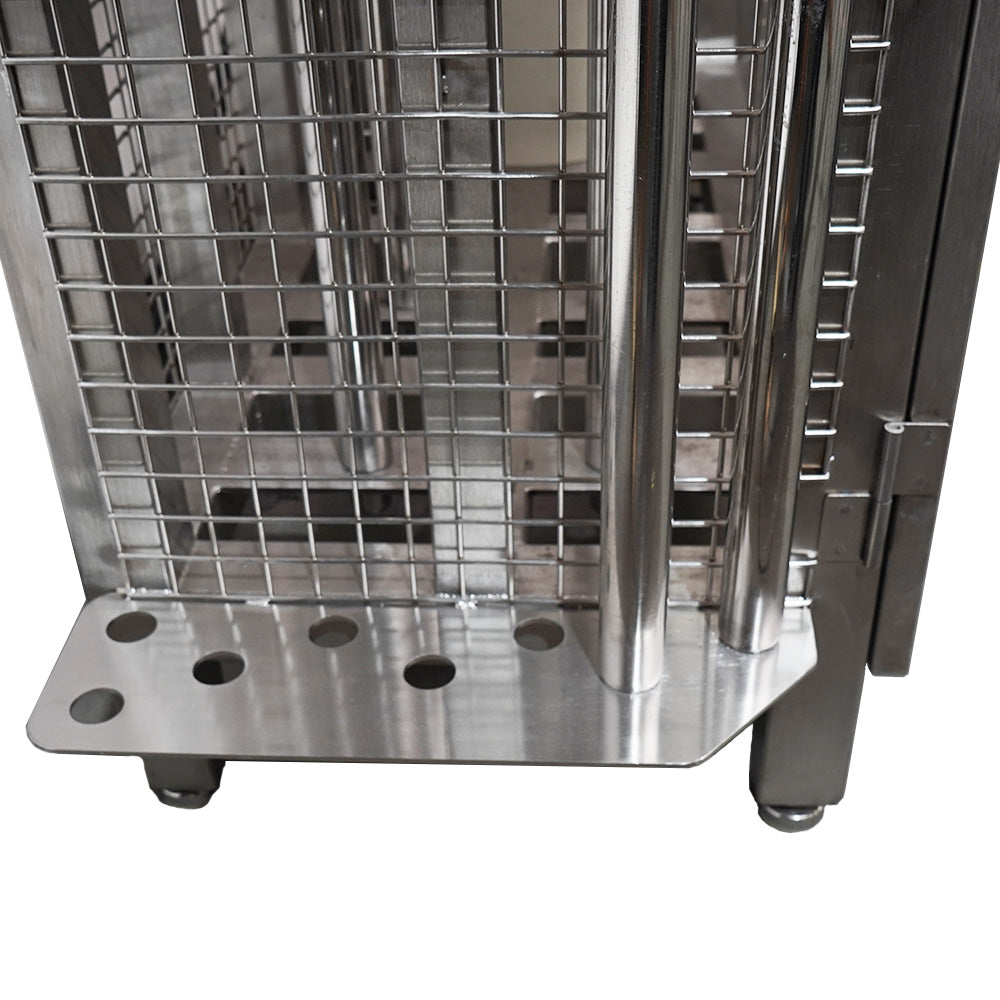 Operator safety is a priority, with advanced safety interlocks that automatically retract the press when the door is opened. The full mesh cage enclosure provides 360-degree protection without compromising visibility. To enhance workflow efficiency, the unit includes external pole storage, keeping your workspace organised and accessible.