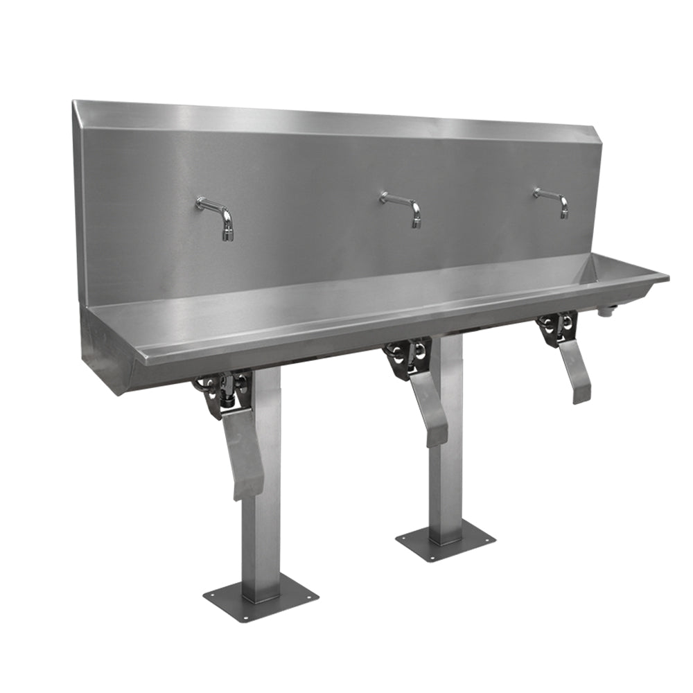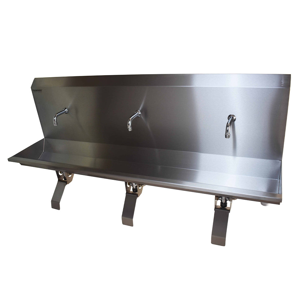 Our knee operated three station wash trough is manufactured in fully welded 304L-grade stainless steel, ensuring ultimate durability and corrosion resistance and a handsfree design prevents contamination.