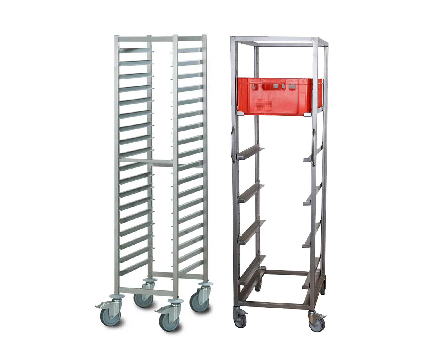 Our gastronorm and euro container trolleys are designed to accommodate multiple standard-sized pans and containers used in the food industry. While the number of shelves provided with the euro container trolley depends on the size of container you intend to store, the gastronorm trolley is available with a capacity of 7, 18 or 36 containers up to 65mm deep.
